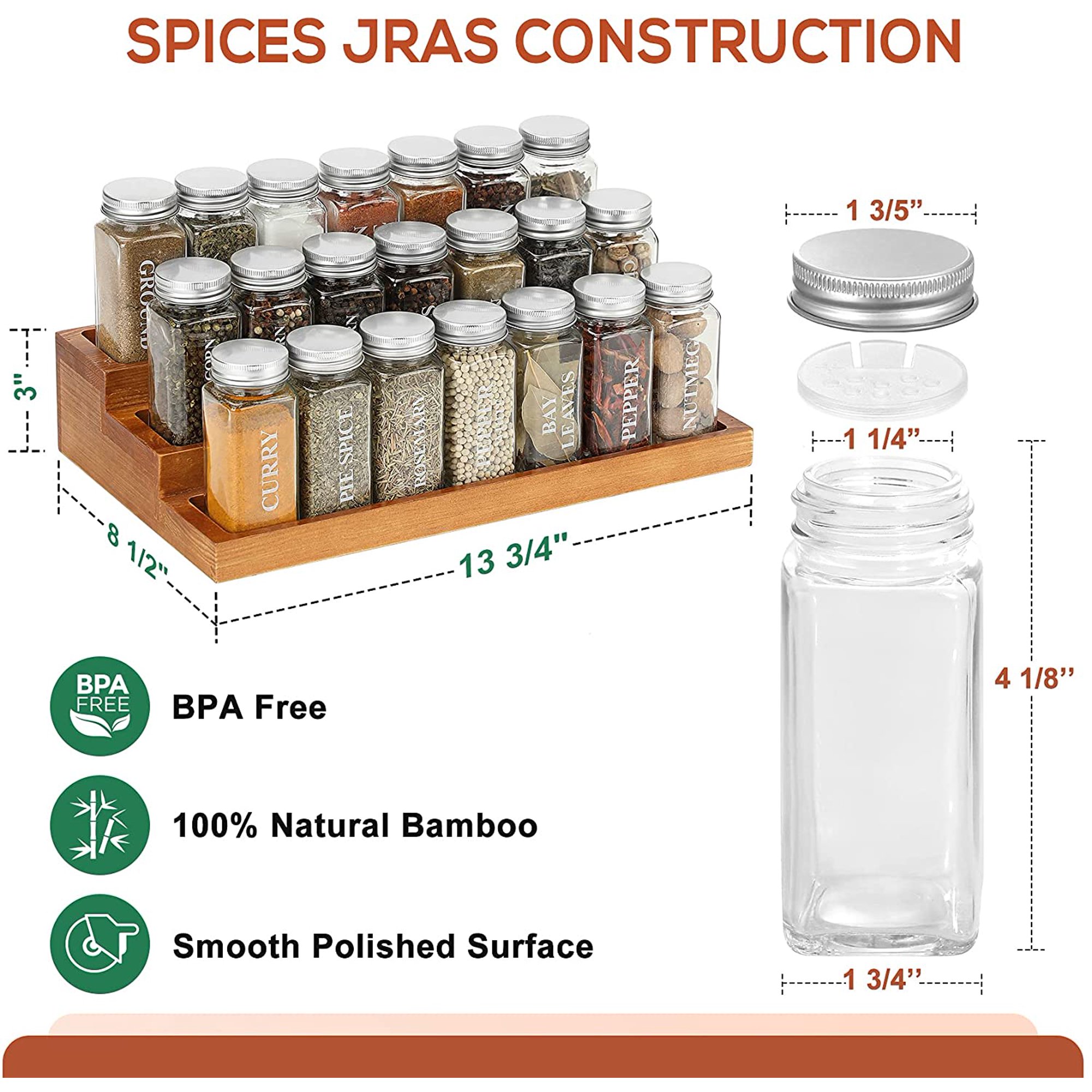 Countertop Spice Rack With 22 Glass Spice Jars 3 Tier Bamboo Space Saver Step Shelf Countertop For Kitchen Cabinet Pantry Printed Spice Labels Chalk Rd And Funnel Included Walmart Canada